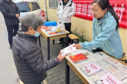 雨歇风住,天空推开了连日的灰幕,暖洋洋的晨阳照得人心头喜洋洋。宣讲现场的人们络绎不绝、气氛热烈。工作人员提前布置好了宣传展台,悬挂起提升法律意识的横幅,摆放了涉及婚姻家庭、劳动纠纷、土地承包、邻里矛盾、防诈骗等与群众生活密切相关的法律知识展板和宣传资料。来自司法所的工作人员、专业律师组成的服务团队,早早来到现场,为居民提供“面对面、零距离”的法律服务。