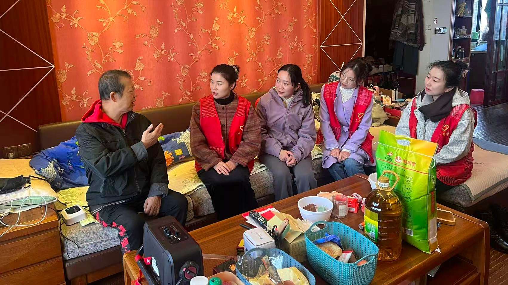 宣讲活动结束后,红色传承的温暖接力从校园延续到老党员家中。社区志愿者与黄亚妮一行带着敬意走访慰问了社区老党员。在王文国家中,大家围坐在老人身旁,关切地询问他的身体和生活状况,认真聆听他讲述那段激情燃烧的奋斗岁月。