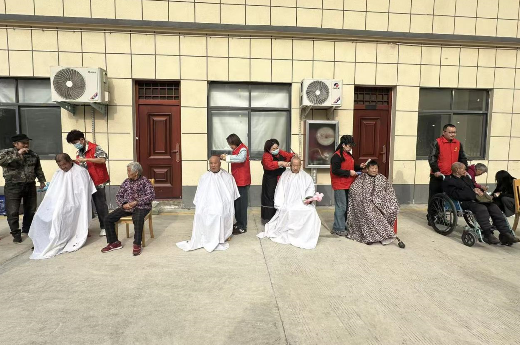 在院落的另一角,信阳义工协会的义剪活动也备受青睐。志愿者们耐心询问老人的喜好,技艺娴熟地为他们修剪头发。伴随着剪刀的“咔嚓”声,老人们的精神面貌也随之焕然一新。一位刚理完发的爷爷对着镜子看了又看,笑得合不拢嘴:“剪得真好啊,感觉整个人都轻快了,谢谢你们!”