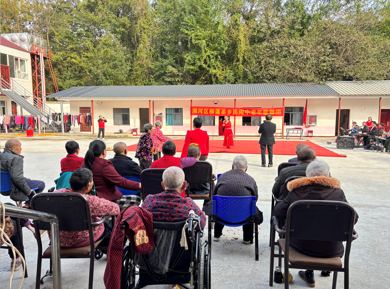 龙嘴村敬老院联合浉河区柳谭茶乡民间中老年歌舞团开展“敬老月”文艺汇演活动,结合老年人兴趣喜好确定歌舞、戏曲等表演节目,做好现场安全保障、座椅布置等筹备工作。节目内容丰富多样,贴合老年人审美需求,赢得在场老人阵阵掌声。志愿者同步开展互动服务,协助行动不便老人就座、递水,组织简易趣味游戏活跃现场气氛。此次活动惠及敬老院全体老人,有效丰富了老年人精神文化生活,体现了对特殊老年群体的精准关怀。