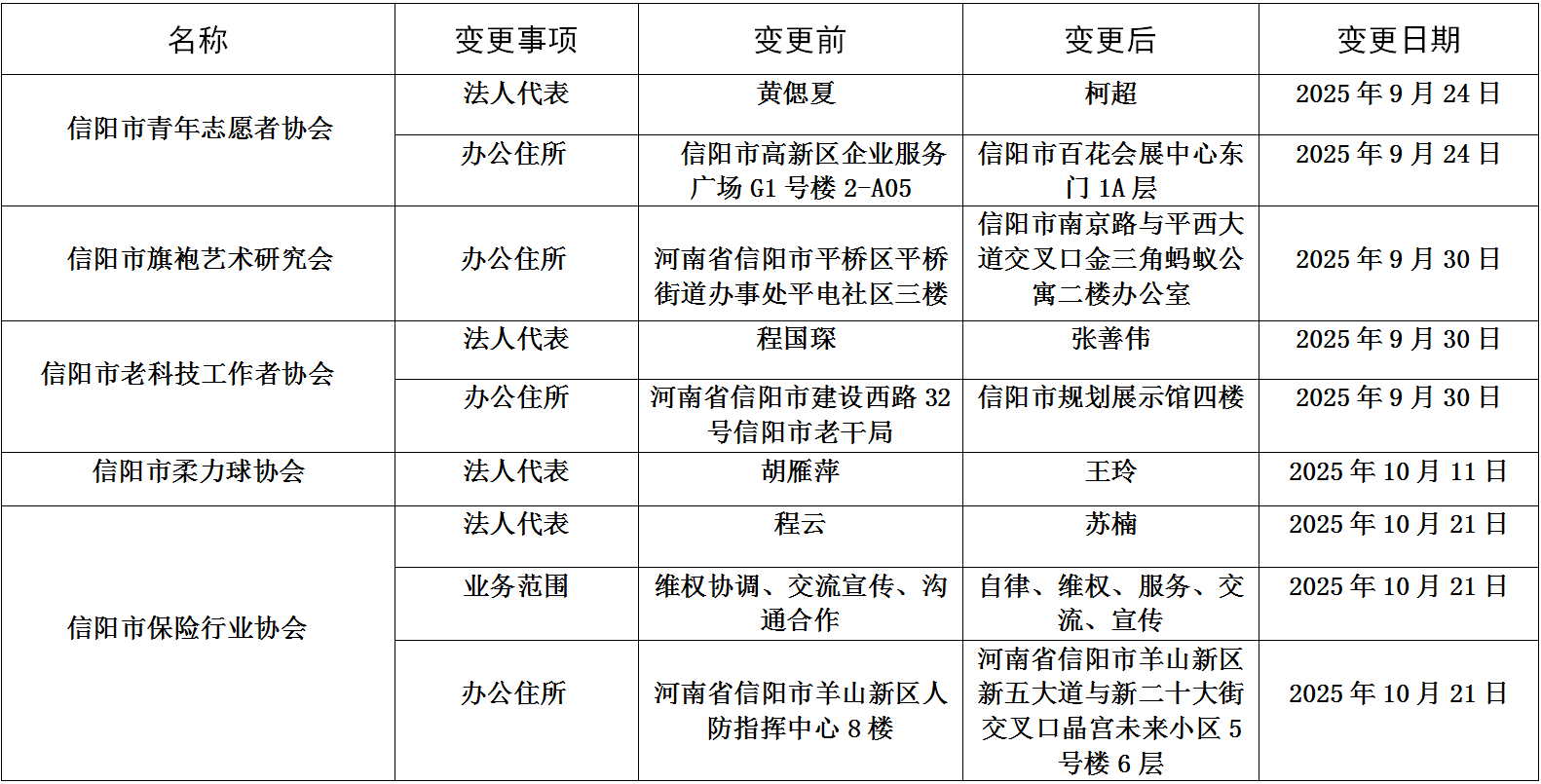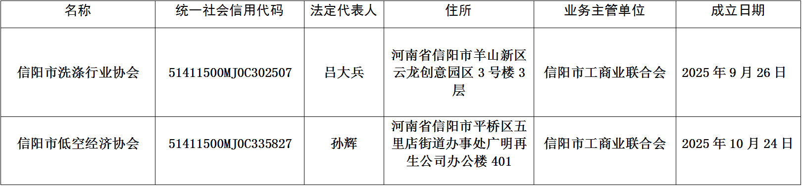 根据《社会团体登记管理条例》《民办非企业单位登记管理暂行条例》等有关规定,经审核,准予信阳市青年志愿者协会、信阳市洗涤行业协会、信阳市旗袍艺术研究会等8家市级社会组织成立、变更、注销。