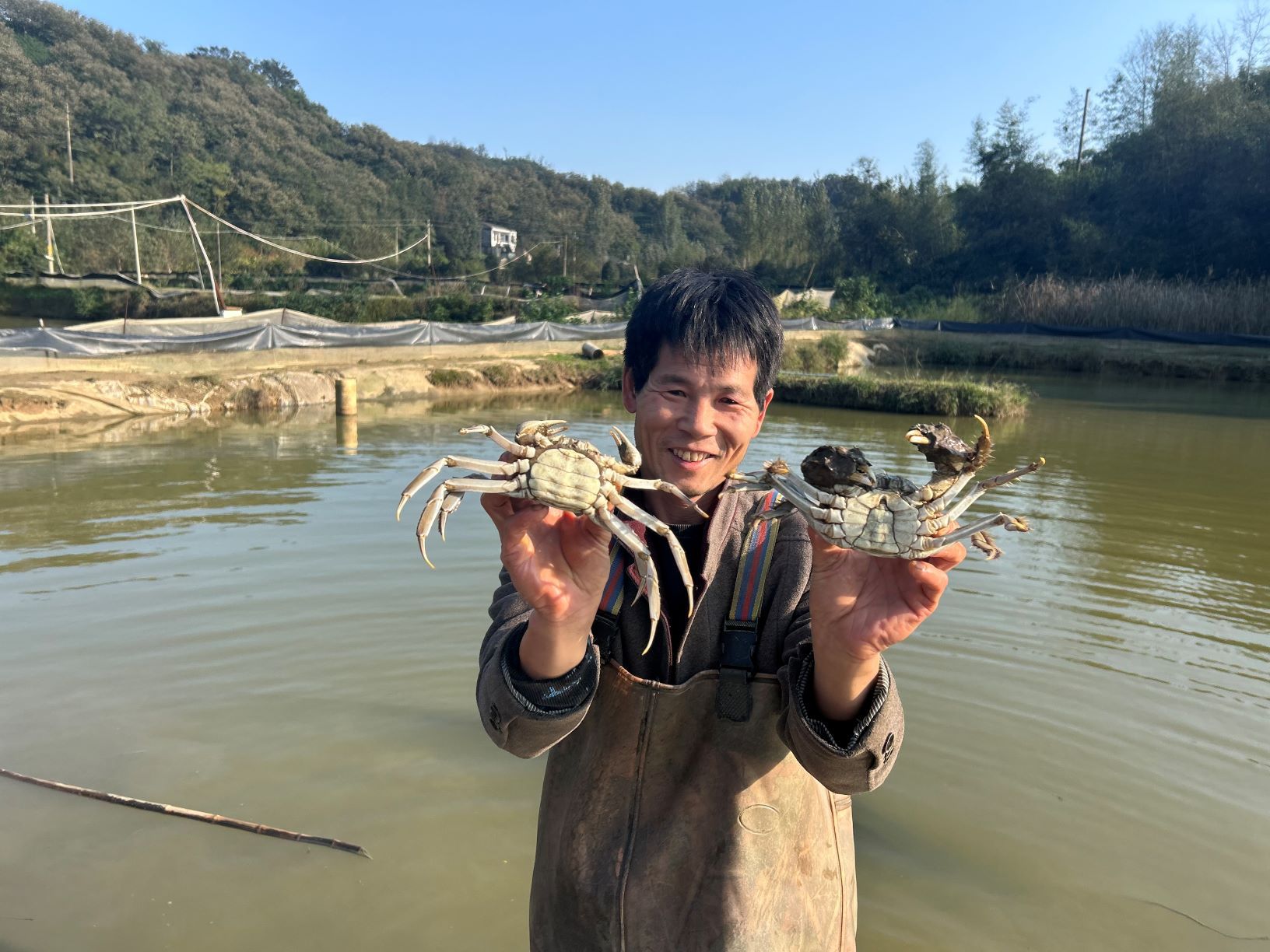 2020年,在外打拼多年的姚先群和妻子冯文敏带着攒下的积蓄和满心期待回乡创业。为找到适宜养蟹的场地,夫妻俩走遍信阳市的河沟稻田,最终被王店村的好水吸引:“别处找不出这么好的水质,生态就是最好的招牌!”此后,他们严格遵循生态养殖技术规范,让优质水资源与蟹苗形成共生循环。