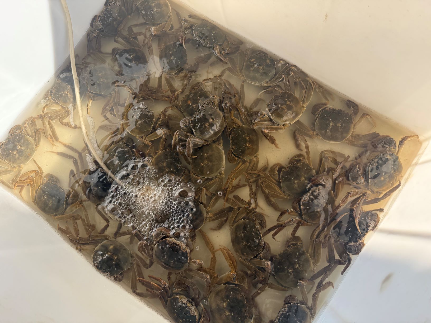蟹塘的红火,让村民们也尝到了甜头。石河组村民张家财蹲在塘边清理水草,手里的动作不停,嘴里的话却透着满足:“离家就几步路,每天除杂草、做投喂,一天能挣120元,还能照顾家里的老人和孩子,比在外打零工舒心多了。”像张家财这样的闲散劳动力,蟹塘基地常年雇佣六七人,到了捕蟹旺季,用工量能达到20余人。王店村村干部黄晓玉坦言:“这处蟹塘不仅盘活了闲置土地,更让村民在家门口实现了增收,实实在在帮大家解决了就业难题。”