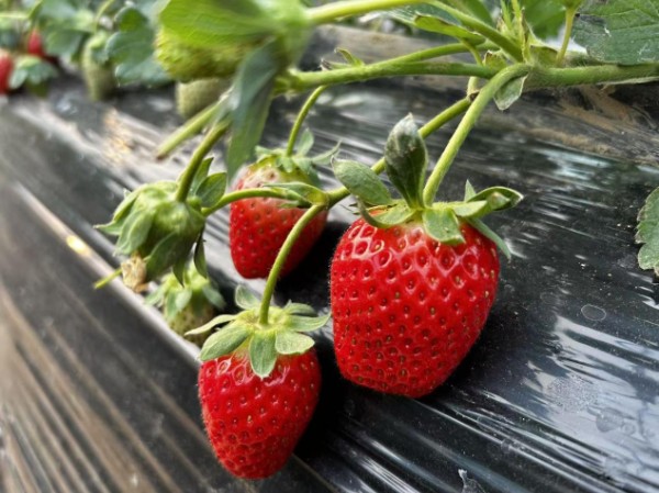 “我们种草莓,最讲究‘自然生长’。”兴欣生态科技种植有限公司负责人许亚平蹲在田垄间查看草莓长势时介绍,基地全程采用蜜蜂自然授粉,从土壤改良到植株养护均遵循自然规律,不打农药、不用催熟剂,采摘后可直接入口。通过绿色种植技术,草莓既保持了本真风味,又保障了食品安全。依托科学轮植与精准控时技术,基地草莓上市周期从每年11月持续至次年5月,实现了“冬春有鲜果、四季有营收”的稳定供应。
