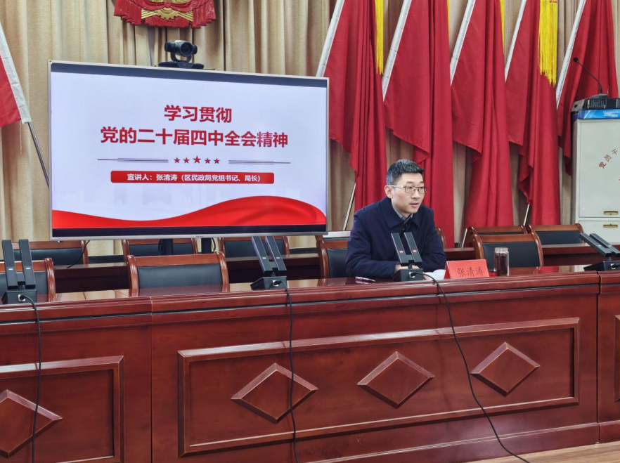 为深入学习贯彻党的二十届四中全会精神,引导广大党员干部切实把思想和行动统一到全会决策部署上来,12月15日,区委宣讲团成员、区民政局党组书记、局长张清涛走进东双河镇机关,开展学习贯彻党的二十届四中全会精神专题宣讲,东双河镇全体机关干部职工齐聚一堂,认真聆听宣讲、深入学习领会全会精神。