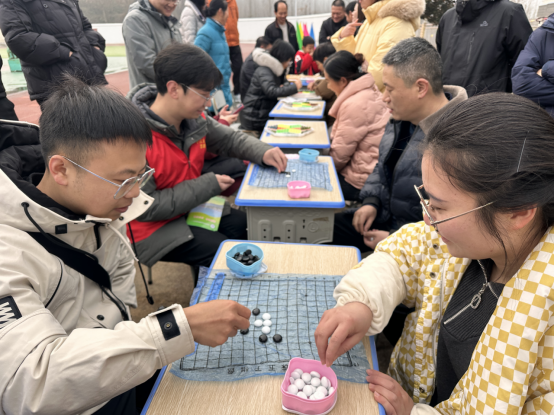健步走结束后,团体赛与个人赛项目依次展开,赛场瞬间变成活力满满的欢乐竞技场。团体赛中,拔河比赛战况尤为激烈,参赛队员们紧握长绳、脚蹬地面、齐声呐喊,使出浑身力气奋力拼搏;“两人三足”接力跑考验着队员间的默契,大家喊着口号、步调一致向前冲刺,将团结协作的精神展现得淋漓尽致。个人赛的比拼同样精彩纷呈,象棋和五子棋赛场,选手们沉着思考、步步为营,在棋盘上展开智慧博弈;跳绳赛场,选手们轻盈跳跃,绳子在空中划出一道道流畅的弧线;跳棋赛场,大家精心布局、巧妙落子,尽显策略与巧思。