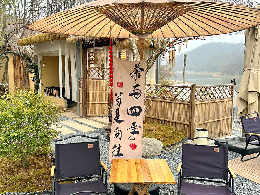 而在位于浉河区浉河港镇郝家冲村的何家寨露营基地,昔日荒山焕发新生。游客们白天采摘毛尖、晚上围炉烹茶,村民们则盯准风口开民宿、办餐馆,旺季时“一房难求”。