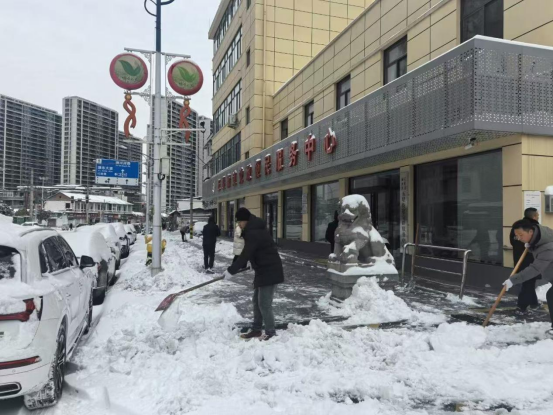 在清扫现场,党员干部带头,志愿者积极响应,周边商户也主动落实“门前三包”责任,共同参与清扫。经过数小时连续作业,截至上午11时,出动清扫车辆近30辆,洒融雪盐近30吨,主干道及重点区域积雪已清理完毕,有效保障了主要道路的基本通行条件。