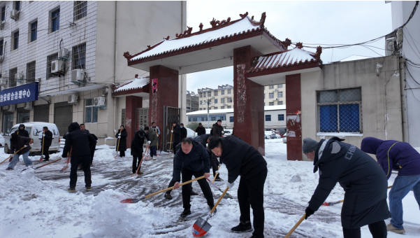 镇党委、政府紧急召开部署会议,明确责任分工,组建多支除冰扫雪队伍,聚焦主干道、公共区域、卫生院周边等重点路段,实行“分片包干、全员参与、逐段清理”机制。干部职工和志愿者们不畏严寒,手持铁锹、扫帚等工具,有序投入到各责任路段,全力投入除雪一线。