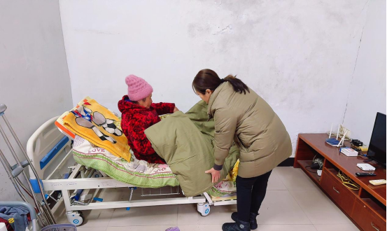 在平西社区,工作人员走访低保户、独居老人等困难家庭,将御寒棉被送到他们手中。在居民家中,工作人员仔细询问取暖情况及生活需求,叮嘱独居老人雨雪天尽量不要出门,有需要可以和社区联系请求帮助,同时要注意防寒保暖和用电安全。