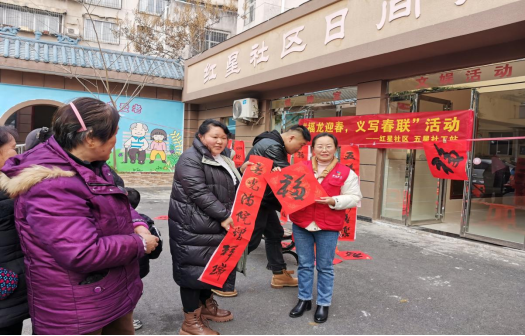 新春佳节渐近,多彩群众文化活动“闹”春来。为进一步弘扬中国传统文化,丰富广大居民文化生活,营造喜庆祥和的新春佳节氛围,近日,浉河区五星街道办事处辖区开展了“ 新春送祝福 福气进万家”写春联送祝福志愿服务活动。