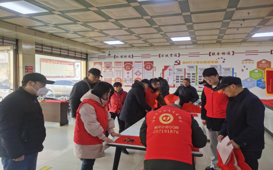 共建单位志愿者、社区党员、社区工作人员为前来领取春联的居民朋友挑选一副春联、奉上一杯热茶、拉上几句家常、送上一段新年祝福,活动在轻松愉快的氛围中进行着。
