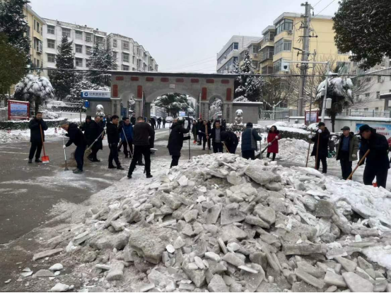 雪花飞舞,寒风瑟瑟。因降雪持续,路面上积了厚厚的一层雪,有的路段的积雪在被碾压后开始结冰,存在很大的安全隐患,同时影响群众正常出行。面对极端恶劣天气,该街道迅速部署安排除雪铲冰工作,全体机关工作人员下沉社区,和包保区直单位、“支部联支部”单位、文明实践结对共建单位、社区工作人员、志愿者、沿街商户、辖区群众一起打响除雪铲冰攻坚“战”,无论主次干道还是背街小巷,除雪的队伍像是一条“长龙”活跃起来。