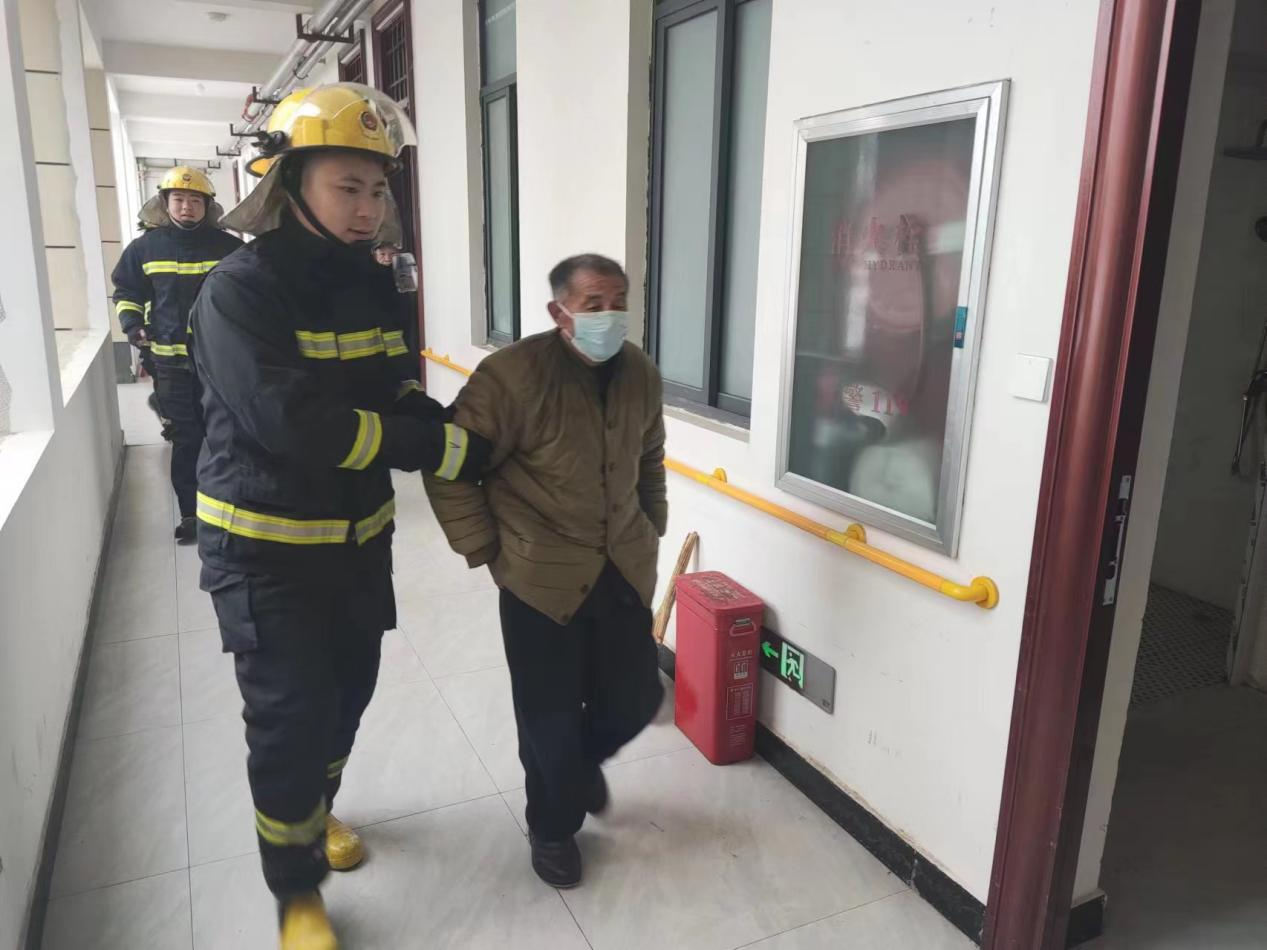 随着警报声响起,一场模拟演练正式开始,工作人员按照消防演练应急预案,带领老人们撤离逃往安全区域,全体老人们在统一指挥协助下,捂鼻、弯腰,快速有序地向安全的地方撤离。