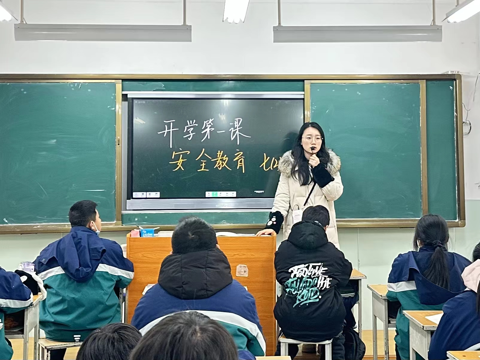 此次法治课安排在该校高一9班教室,其余班级学生通过广播参与课堂。