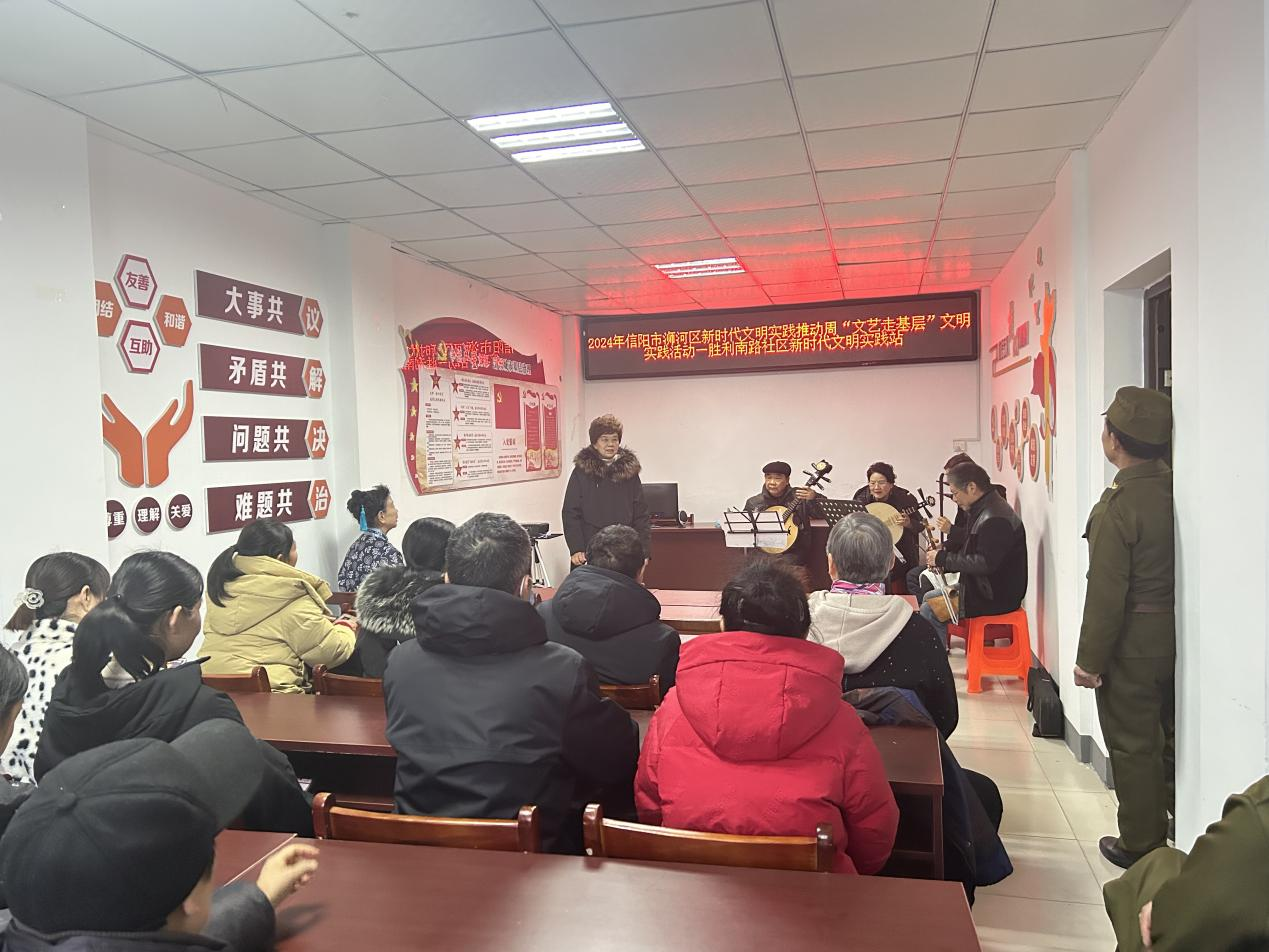 为进一步丰富和活跃居民群众的文化生活,营造团结、健康、欢乐、祥和的群众文化氛围,谱写新时代文明实践活动新篇章。1月6日,浉河区老城街道积极组织开展“文艺走基层”系列文明实践主题活动。