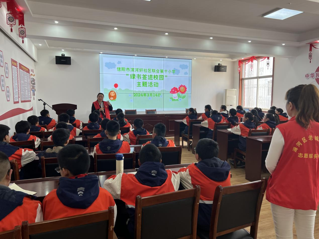 “老师老师,你看看我画的这个‘绿书签’怎么样?”学生刘淑可正在和老师夏敏交流关于“绿书签”制作的创意。为保护辖区未成年人健康成长,营造良好的文化环境和社会氛围,3月14日,浉河区老城街道滨河轩社区联合浉河区第十小学开展了“护苗2024·绿书签行动”进校园主题活动。