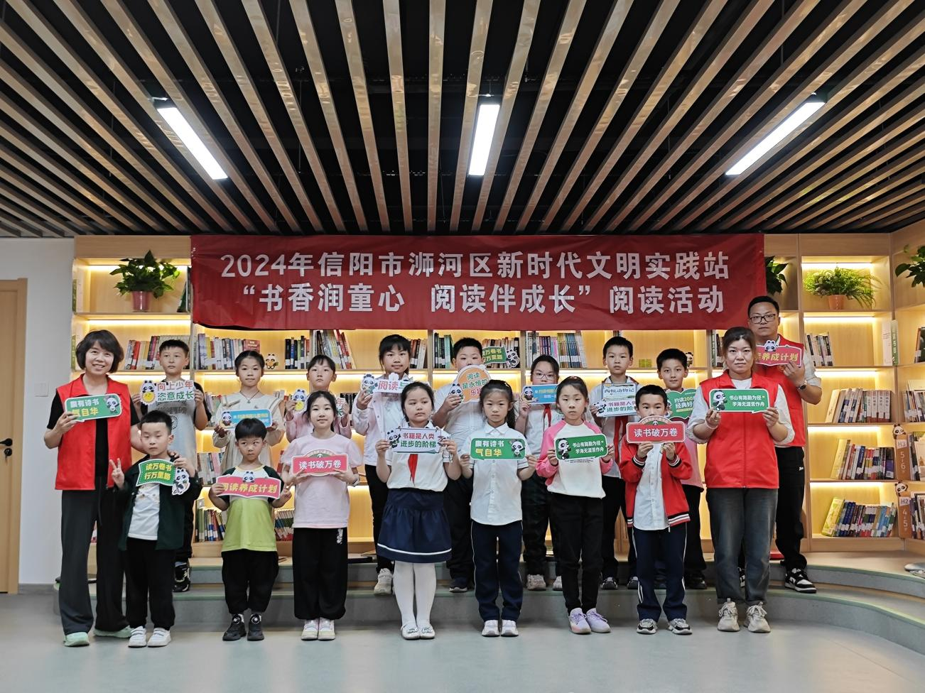 在该街道中山社区,社区新时代文明实践站联合辖区单位信阳市水利局志愿者组织孩子们来到了局家属院二楼的约读书房多功能图书室,尽情地挑选着自己感兴趣的书籍,有科普类、唐诗类、童话类、寓言类等,挑选完毕后,孩子们便开始阅读,遇到不认识的字或不理解的句子,孩子们都会向志愿者请教,读书结束后,孩子们相互分享了自己喜爱的图书和读后感。