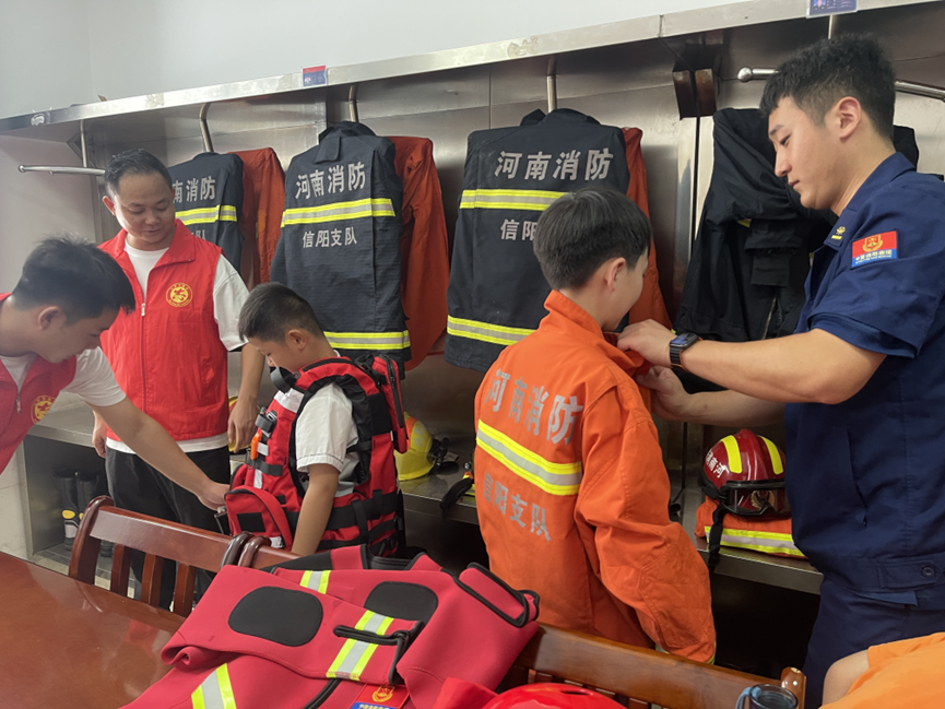 为了进一步提高辖区青少年消防安全防范意识,科普消防安全知识,丰富青少年的暑期生活,7月24日上午,浉河区五星街道宝石社区组织辖区内青少年前往信阳市浉河区消防救援大队进行参观学习,开展“宝石科普体验行”文明实践活动,与消防官兵近距离接触,接受了一次生动而又深刻的消防安全教育。