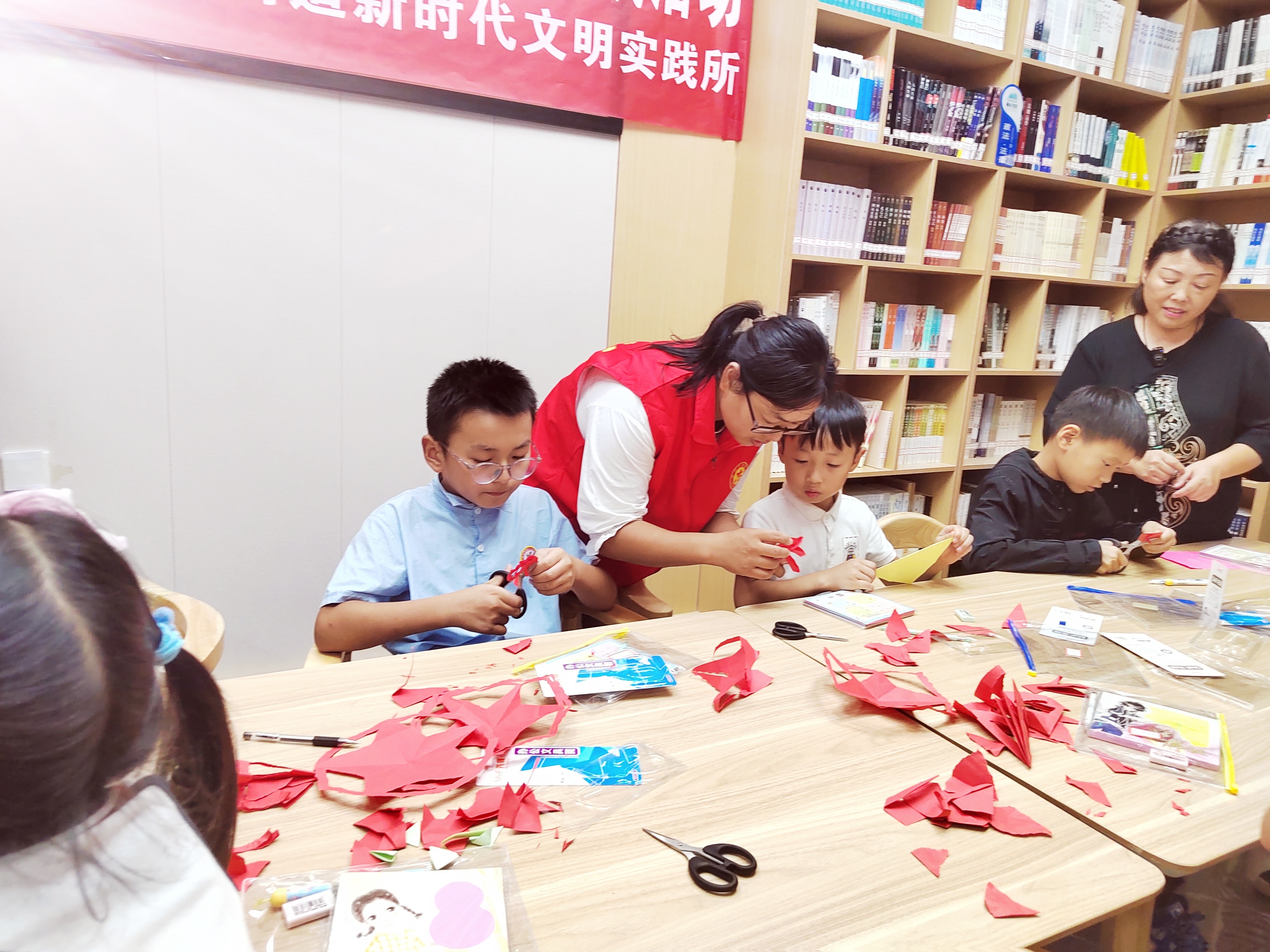 “剪纸艺术是最古老的中国民间艺术之一,作为一种镂空艺术,它能给人以视觉上的感官享受......”“从开口处剪直线,剪掉一指宽度......”从剪纸艺术的起源和历史文化出发,谢老师以通俗易懂的语言,对剪纸的分类、用途、图案、技巧等不同方面进行了深入浅出地讲解,并就大家提出的问题逐一作了解答。在老师和志愿者的耐心指导帮助下,孩子们充分发挥自身想象力,一张张彩纸被裁剪出小青蛙、中国结、福字等一件件精美的手工艺品。