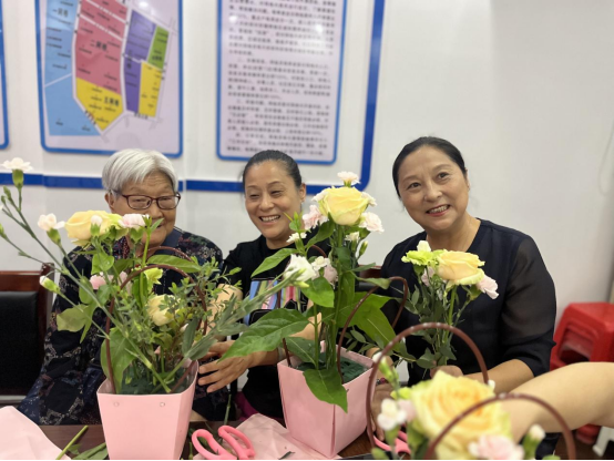 鲜花为媒,绿叶为信。插花艺术作为中国传统文化的一部分,历史悠久,源远流长。它不仅是将花卉、枝叶等植物材料经过修剪、搭配、点缀等手法,创作出具有艺术美感的作品,更是一种表达情感、传递文化的方式。让居民们在欣赏和创作插花的过程中,感受到传统文化带来的的魅力,同时也拉进了邻里之间的感情,共建共享睦邻友好的社区氛围。