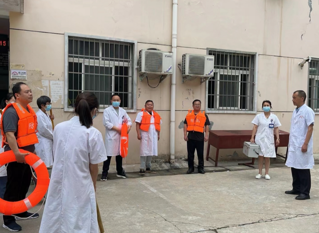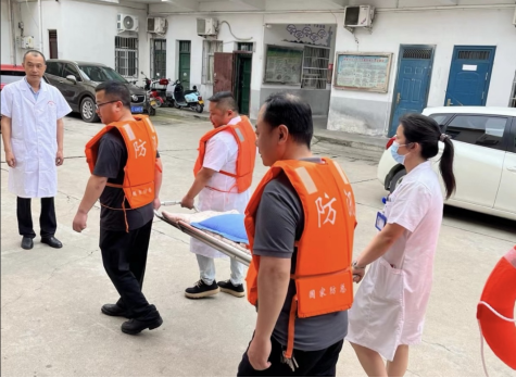 为切实提升卫生院应对自然灾害的应急处置能力,保障人民群众生命财产安全。5月27日上午,李家寨镇卫生院精心组织了一场防汛演练。李家寨镇卫生院地势较低,且紧邻朝天河流域,汛期来临,容易出现河流倒灌等危险情况。因此,此次演练以河流倒灌为背景,模拟了卫生院在极端天气条件下的应急响应和病人转移过程。