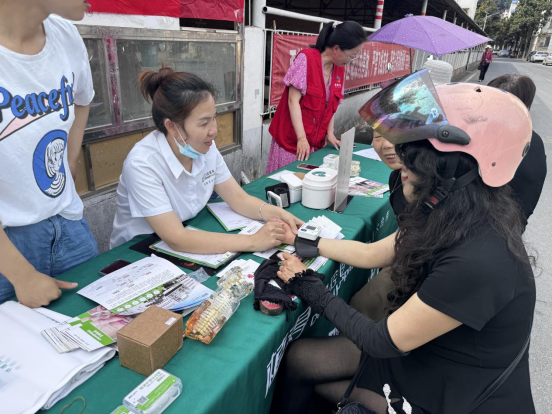 6月14日上午,浉河区五星街道开展口腔义诊进社区活动,邀请口腔医院医护人员为居民提供免费口腔检查、血压检测等义诊服务。