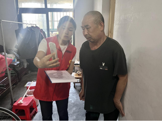 工作人员打印好符合条件的老年人名单,并对有高龄、腿脚不便、残疾、卧病在床等情况的老人逐一备注。“您好,张大爷,我来给您办理养老保险到龄资格认证了。”