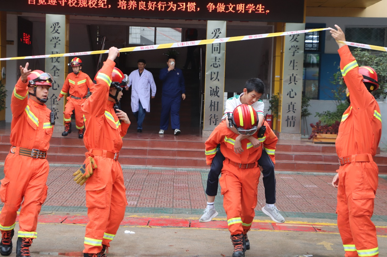 (游河乡政府在游河乡三官中心校开展校园突发事件疏散逃生及应急救援演练 袁晓宁 摄)