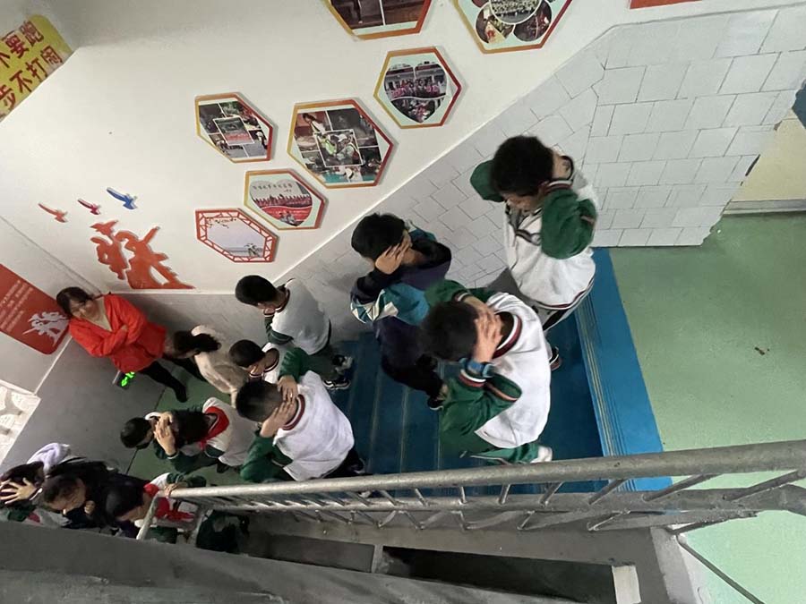 当地震警报声响起,校园广播中传来“地震来了,立即蹲下避险!地震来了,立即蹲下避险!地震来了,立即蹲下避险!”9月25日上午9时,信阳市浉河区金牛山街道在中心学校组织开展“全市安全日”防震避险应急疏散演练活动,疏散时,学生们听从指挥,弯腰、护头,按指定路线迅速有序撤离至安全区域。