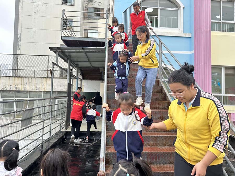 (南湾办事处松树坦小学“地震疏散演练”活动 陶丽丽 摄)