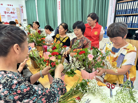 “没想到插花还是个技术活,想弄得漂亮点,还真得花点心思!”社区居民杨阿姨一边修着枝一边说。活动现场到处弥漫着花的芬芳,充满欢声笑语。