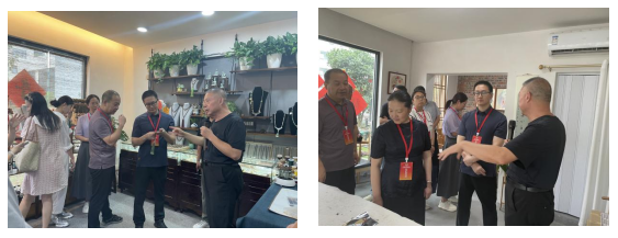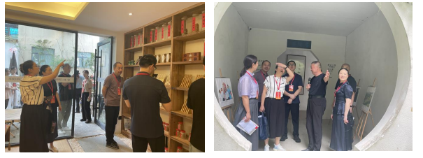 南湖书院,这座承载着丰富文化底蕴的殿堂,在阳光的映照下显得格外庄严肃穆。在书院领导的热情陪同下,调研队伍先后参观考察了一系列令人瞩目的文化场所。信阳非物质文化遗产展馆如同一幅幅生动的艺术画卷,缓缓展开在众人眼前,展现着这片土地上源远流长的非物质文化传承;书画长廊里,一幅幅由当地知名书画家创作的精美书画作品散发着艺术的魅力,让人沉醉其中;家风家教基地则传递着中华民族传统美德的力量,温暖而又深沉;国家级旅游民宿以其独特的风格和非遗文化氛围,给人留下了深刻的印象;文化雅集室汇聚了文人雅士,提供琴棋书画诗酒茶花香九雅活动场所,充满着诗意与才情;香道馆中袅袅升起的香烟,带着宁静与祥和的气息;非遗酒馆里弥漫着醇厚的酒香,讲述着非遗酒文化的故事;青木堂、玉润堂、丹君画室,每一处都散发着艺术的光芒,仿佛在诉说着创作者的心声。