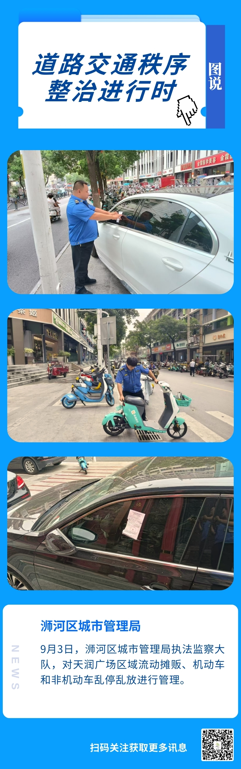 【图说】浉河区城市管理局执法监察大队:在天润广场区域开展道路交通秩序整治行动