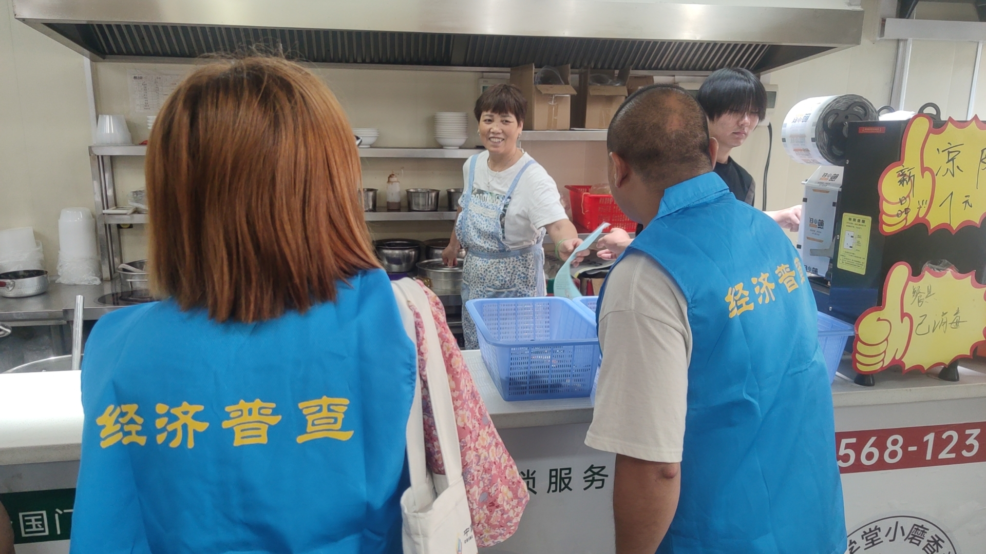 在普查工作中,社区工作人员向商铺发放宣传物品,在发放过程中广泛宣传经济普查重大意义,同时,工作人员放弃个人休息时间,加班加点的向辖区商铺进行经济普查登记工作,耐心的向商铺负责人介绍了经济普查的重要性和必要性,并取得了大家的信任与支持。