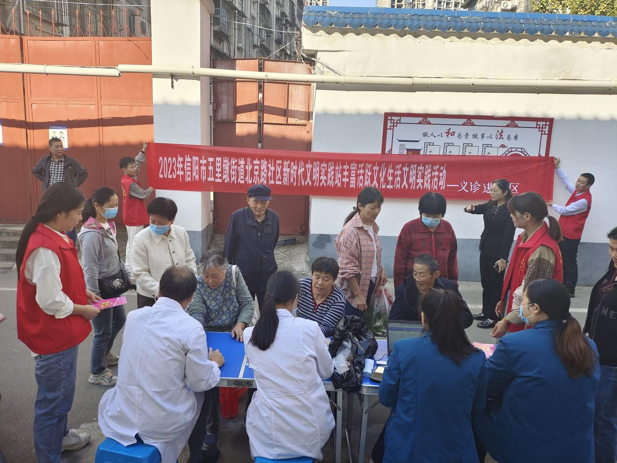 为深入宣传健康知识,提升居民维护健康意识。10月17日上午,浉河区五里墩街道北京路社区新时代文明实践站联合区交通医院开展义诊进社区活动。