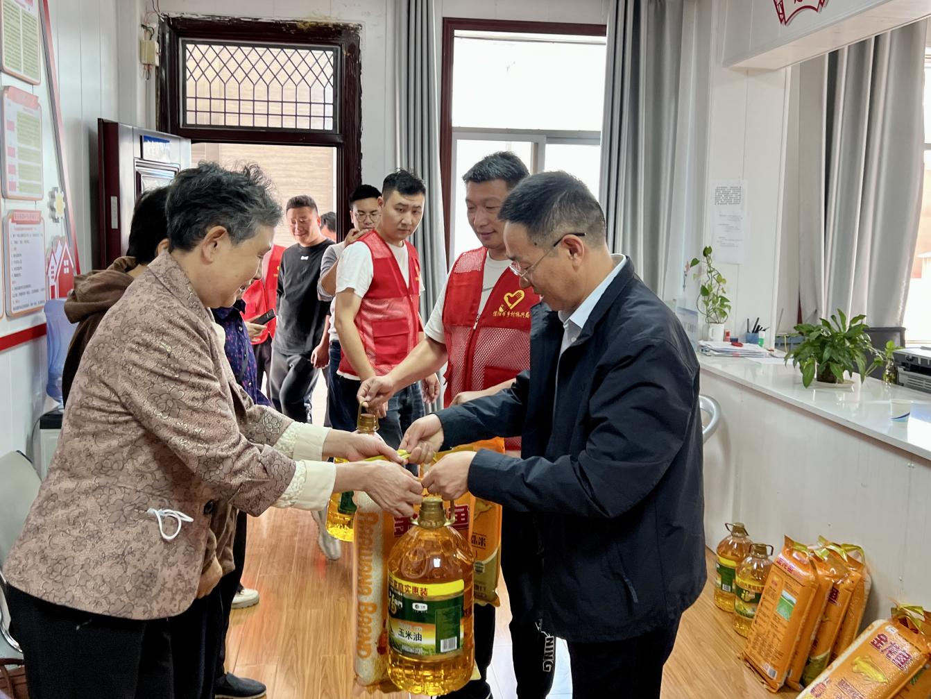 活动当天,市乡村振兴局党组成员、副局长吴天松和民权街道宣传委员卢海霞带领工作人员首先来到四一社区,与老人们亲切交谈,详细了解他们的身体状况和生活情况,并为他们送去大米、食用油等慰问品,鼓励他们要保持积极乐观的生活态度,注意身体健康。