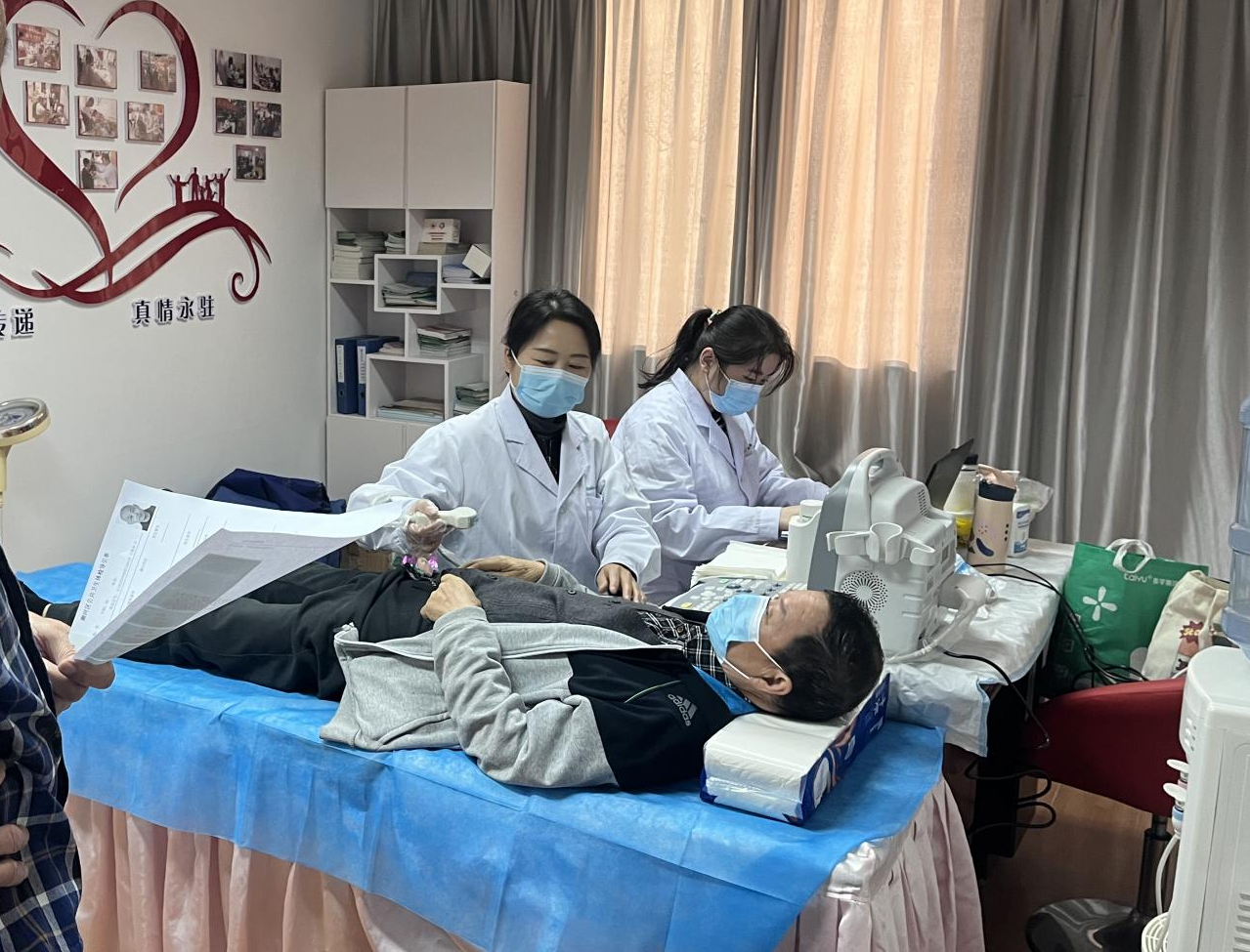 活动当天,医护人员和社区志愿者们早早来到现场进行布置并调试好相关设备,引导老人们有序排队参加体检。测血压、测血糖、心电图、血常规化验、超声检测……在现场,医护人员及志愿者默契配合,耐心地为每一位参加体检的老人逐项进行细致检查并做好记录,通过面对面沟通的方式,仔细了解大家目前的身体情况、既往病史和服用药物,并根据不同情况进行评估干预和健康指导,同时针对老人们集中反映的健康问题逐一做好解答,叮嘱老人发现身体异常时要及时就诊,真正做到无病早预防、有病早发现、生病早治疗。