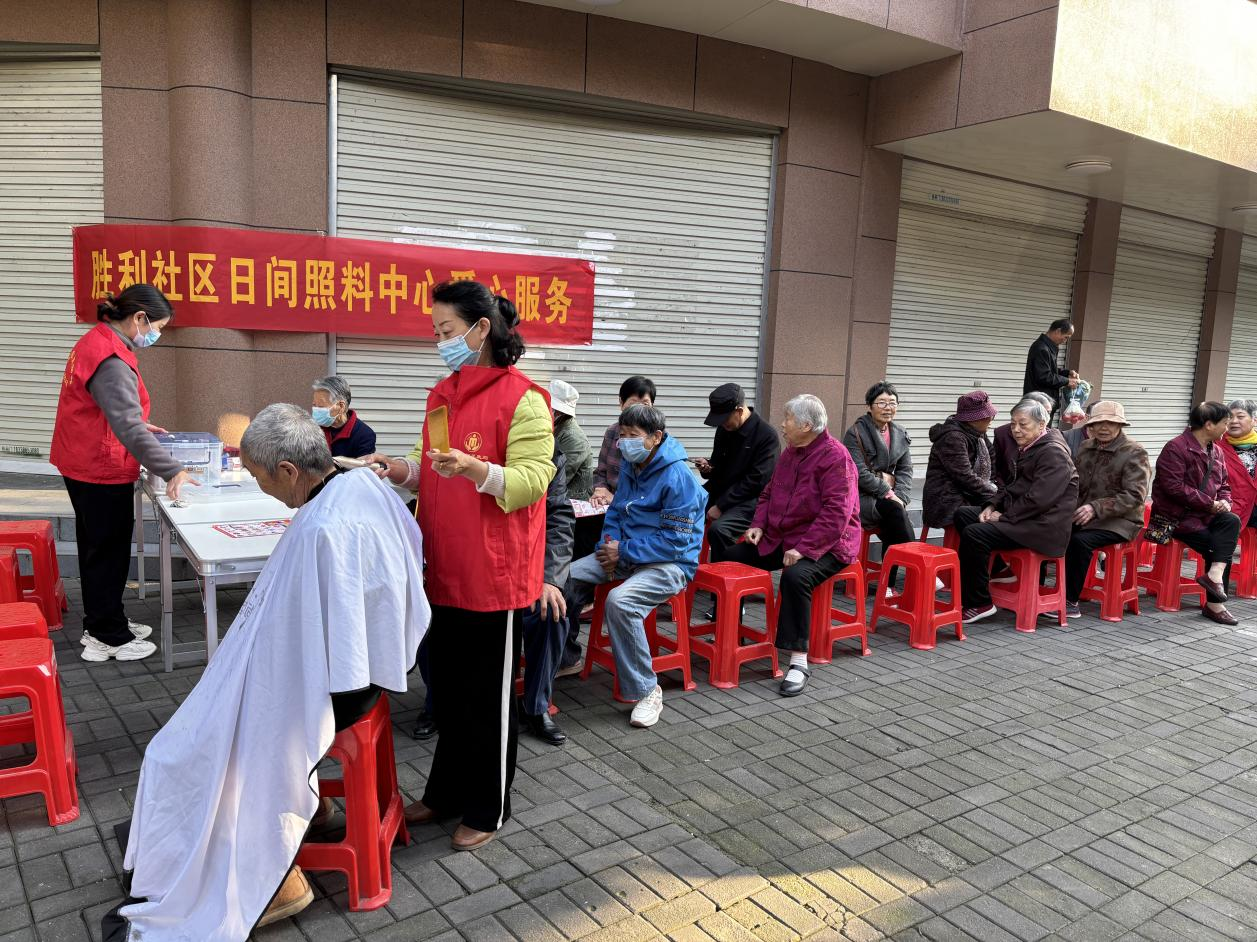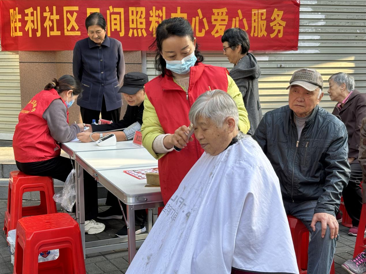 同期,老城街道胜利社区日间照料中心也结合“爱心服务日”活动为辖区老年居民免费提供义诊义剪服务,并现场宣传日常医疗保健知识,倡导大家限盐控油、合理膳食、戒烟戒酒、适量运动,养成健康的生活方式,累计惠及群众50余人次。