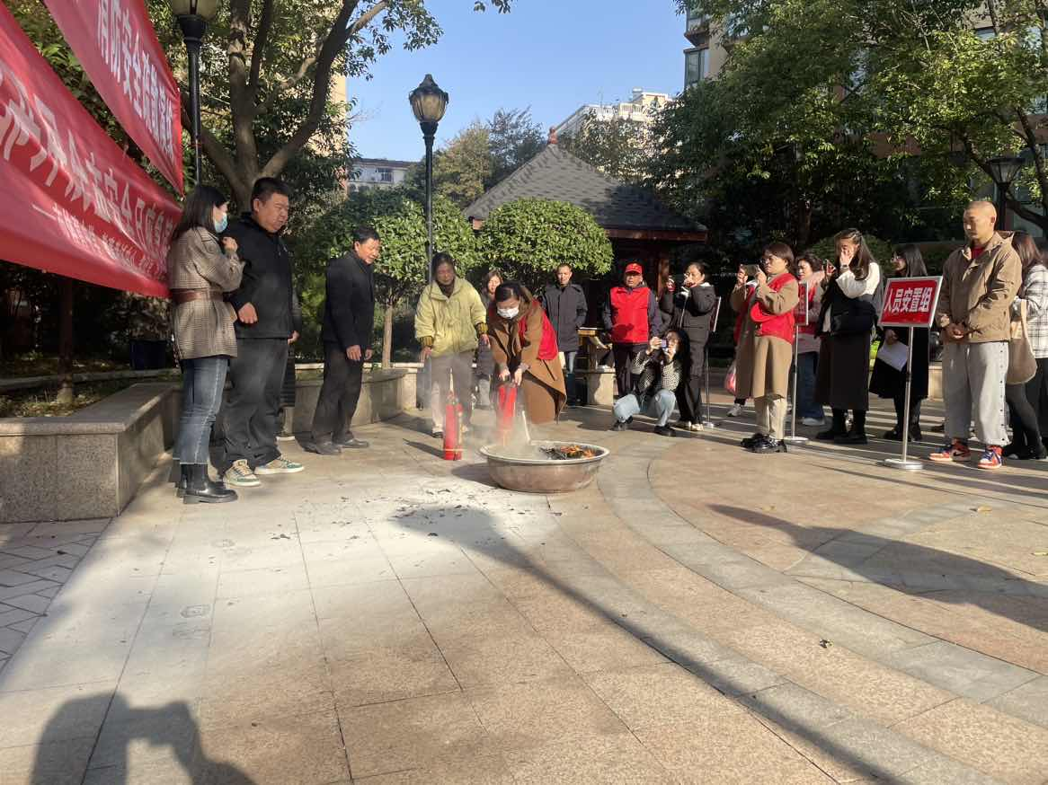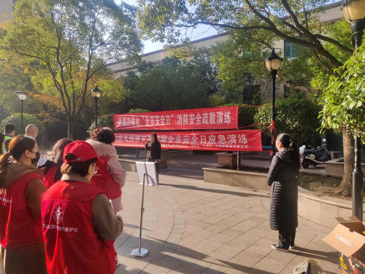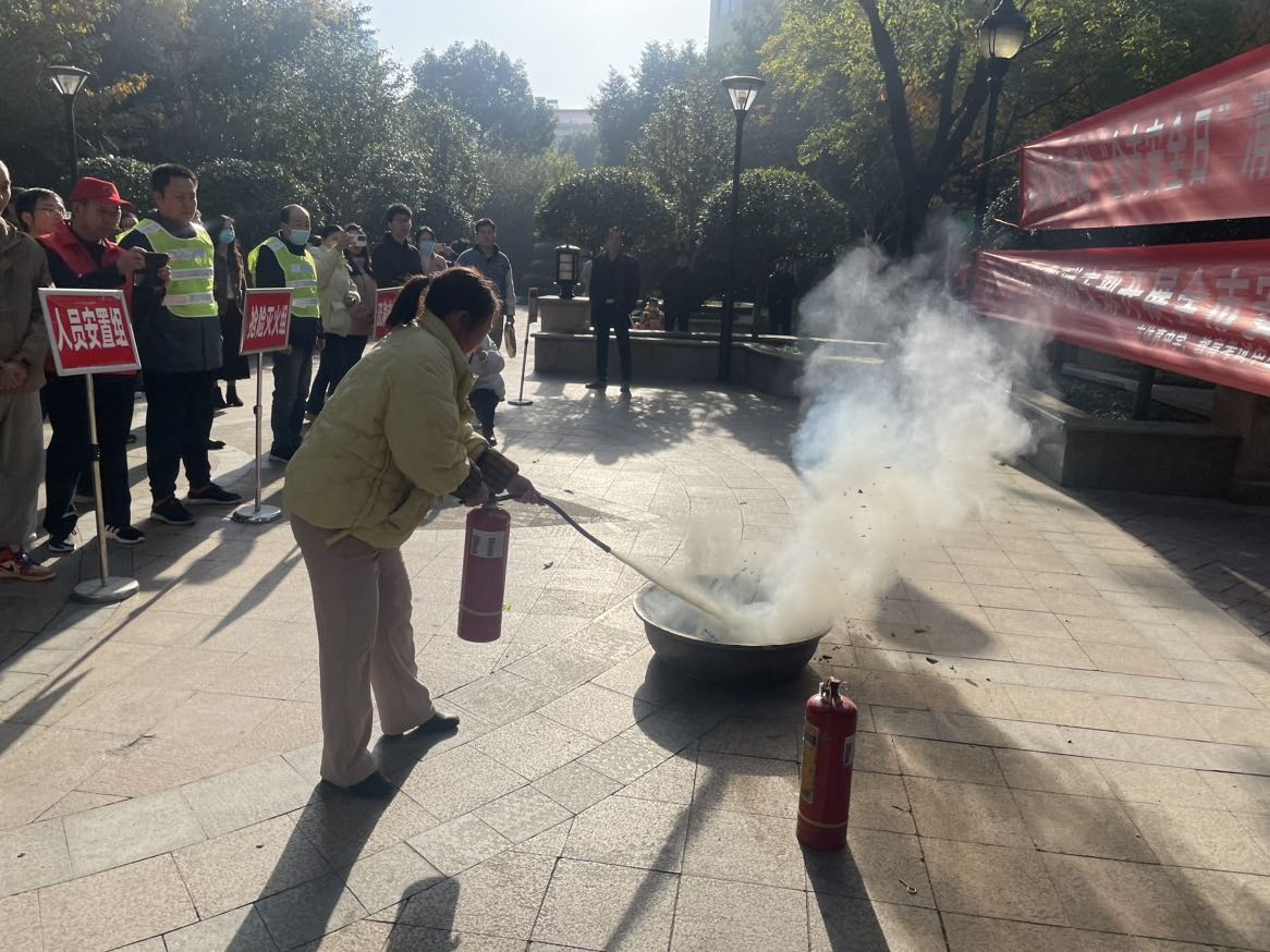 11月27日上午10时,浉河区老城街道在胜利南路社区水岸东方小区进行高层居民楼火灾事故应急演练活动。