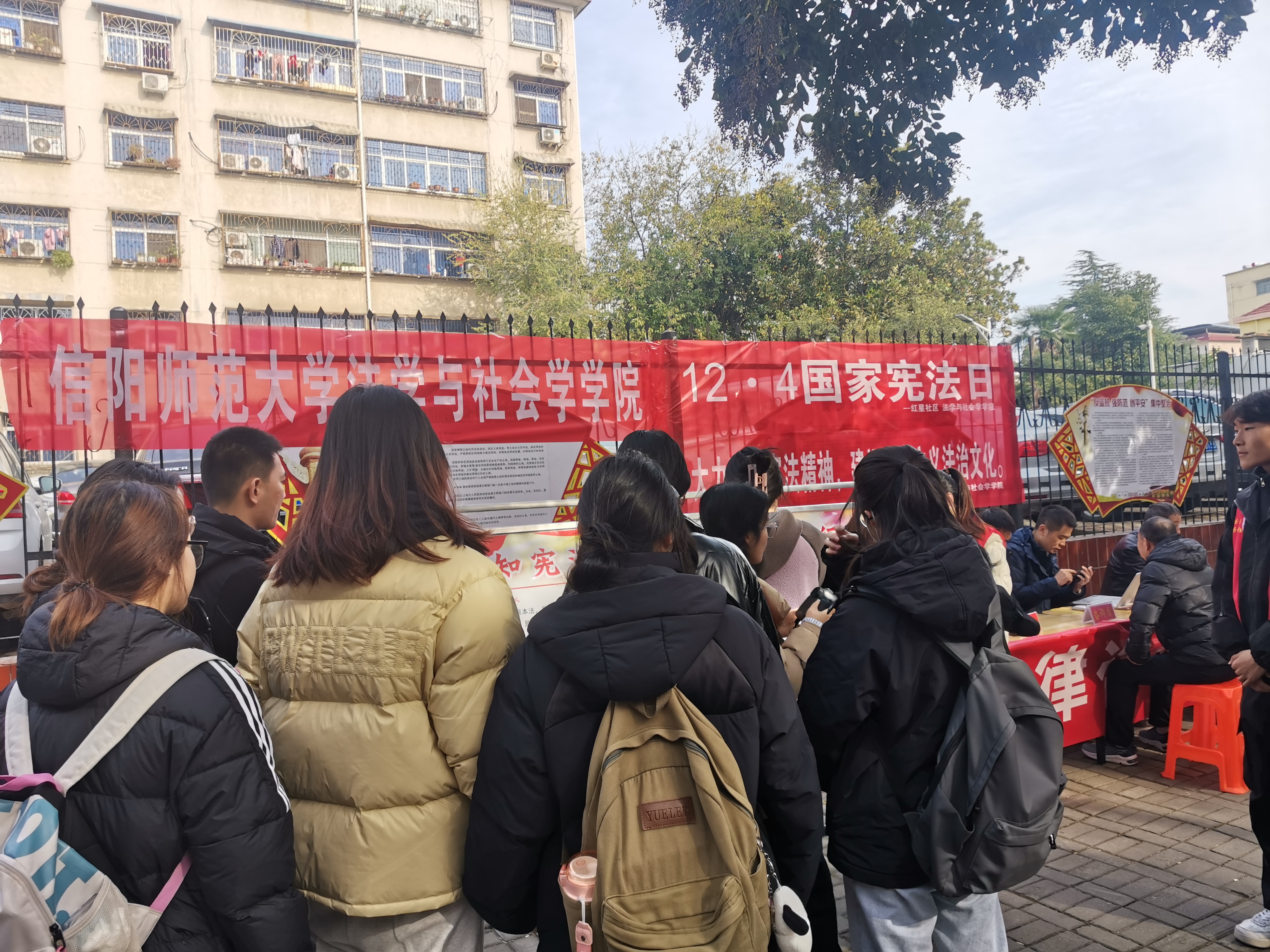 2023年12月4日上午,五星街道红星社区联合信阳师范大学法学与社会学学院在辖区开展“大力弘扬宪法精神,建设社会主义法治文化”宪法宣传日志愿服务活动。活动中,志愿者们通过发放宣传资料、悬挂标语横幅、摆放宣传展板、提供法律咨询等多种形式,向群众宣传宪法、民法典等与大家生活息息相关的法律知识,用身边真实的案例现场“以案释法”,为群众答疑解惑,引导群众自觉尊法、守法、用法。