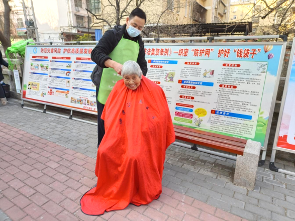 趁着居民排队等候理发的间隙,一旁的工作人员手拿反诈宣传资料正在向居民发放。“快过年了,大家把这个防骗指南带回家好好学习一下,擦亮眼睛,守好‘钱袋子’,过一个平安幸福年!”此外,活动现场还设置了多块宣传版面供居民学习了解反诈知识。