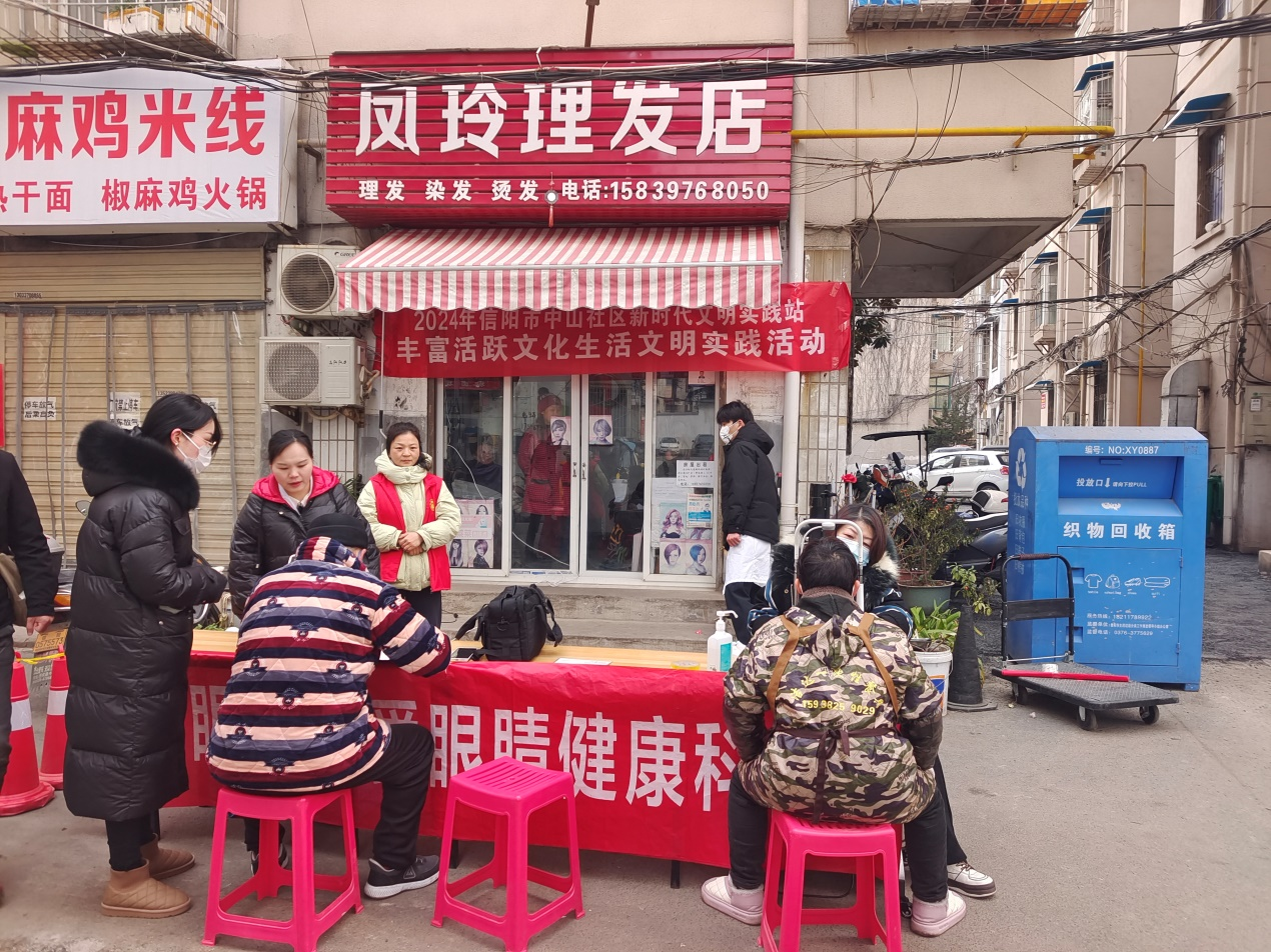 1月15日,浉河区老城街道中山社区新时代文明实践站联合辖区大亮眼科医院开展“关爱眼健康 情暖居民心”眼科义诊活动。