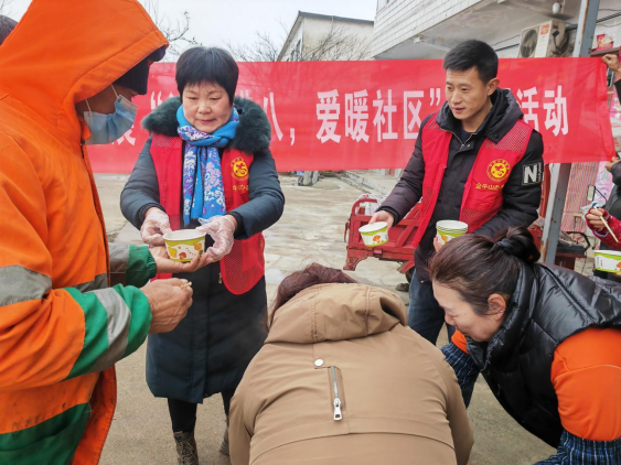 随后,在社区爱心驿站门口,街道、社区的工作人员和志愿者一起把熬制好的腊八粥进行发放,同时还贴心地为大家准备了刚出锅的油条。志愿者们一边盛粥,一边给大家讲述着腊八节的由来和相关习俗。除此之外,社区还组织志愿者给户外工作者、辖区行动不便的老人送上一碗热气腾腾腊八粥。“在这里喝碗粥,浑身热乎乎的,干起活儿来更有劲。”一名环卫工作喝着粥,满脸幸福地说。