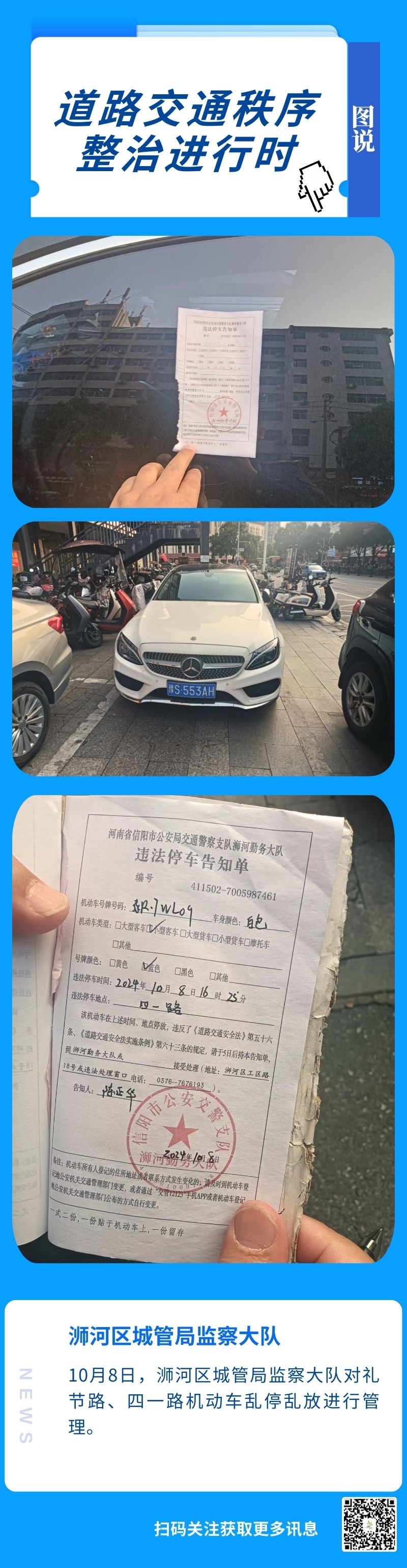 【图说】浉河区城管局监察大队:对礼节路、四一路机动车乱停乱放进行管理