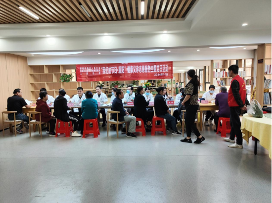 10月11日上午,人民社区联合信阳市残联及信阳职业技术学院附属医院共同开展“我们的节日·重阳”健康义诊志愿服务主题党日活动。来自信阳职业技术学院附属医院的10位专家医生现场为辖区居民提供包括测量血糖血压、心脑血管疾病咨询、儿科问题咨询等10项免费医疗服务,并根据测量结果提供检查及用药建议,全方位为群众解读健康密码。