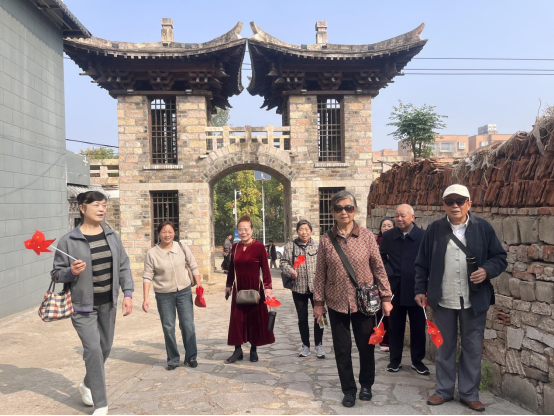 平西社区、秀水社区志愿者组织辖区老人游览古镇,感受当地传统文化底蕴。