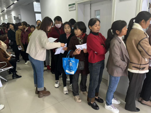 三是不断优化服务。以惠民利民、细心贴心的工作方式来服务妇女健康。各村(社区)村干部提前收集参加人员名单,帮助其在医院预约挂号,完成导诊工作,全程陪同指导本村妇女完成筛查流程。同时,对于筛查结果异常的妇女,及时提供心理疏导,指导进行复诊,介绍国家有关“两癌”疾病相关的医保政策,确保筛查前广泛宣传,筛查中全程陪同,筛查后持续跟进。全天累计参检妇女共计147人次。