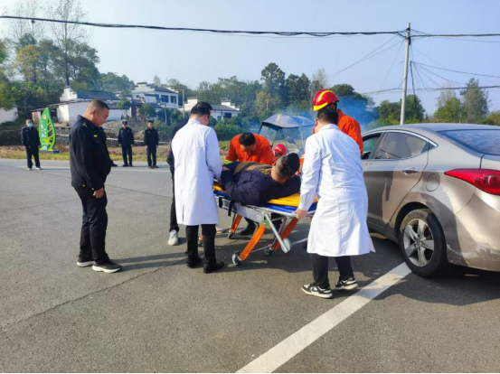 为切实提高道路交通事故应急救援处置能力,全力防范化解道路交通安全风险,在董家河镇平安建设办公室的指导下,10月28日,在楼畈村开展道路交通事故处置综合应急演练。此次演练董家河镇平安建设办公室联合区林茶局,董家河镇派出所、卫生院、专职消防救援队、行政综合执法大队等相关部门开展道路交通事故处置综合应急演练。