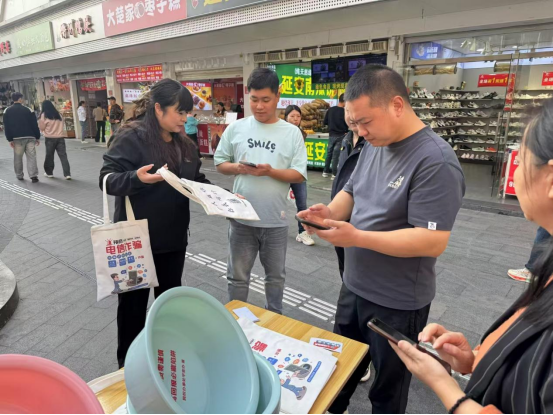 活动现场设置宣传摊位,向过往行人发放印有国家反诈APP的帆布袋、脸盆、反诈宣传手册等,并联合辖区奶茶店,推出印有国家反诈APP标签的反诈奶茶,引导群众扫码下载国家反诈APP进一步提升群众的防范知识。工作人员现场解答群众关于诈骗的疑问,提供防骗建议。社区志愿者现场帮助指导老年人安装“国家反诈中心”APP,并指导他们发现可疑情况时拨打报警电话110,提高防范意识,增强辖区居民的警觉性和防骗能力。在现场司法所工作人员还向群众宣传了相关法律法规,让群众了解诈骗的法律后果和维权途径。